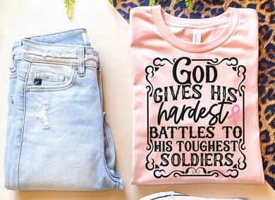 God Gives His Hardest Battles To His Toughest Soldiers w/ Pink Ribbon- Regular price