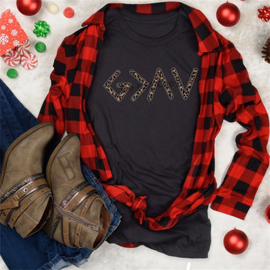 God Is Greater Then The Highs and Lows w/ Leopard Print - Black Tee