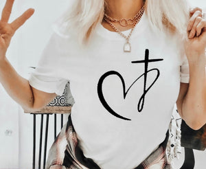SMALL Heart Cross - Black Ink