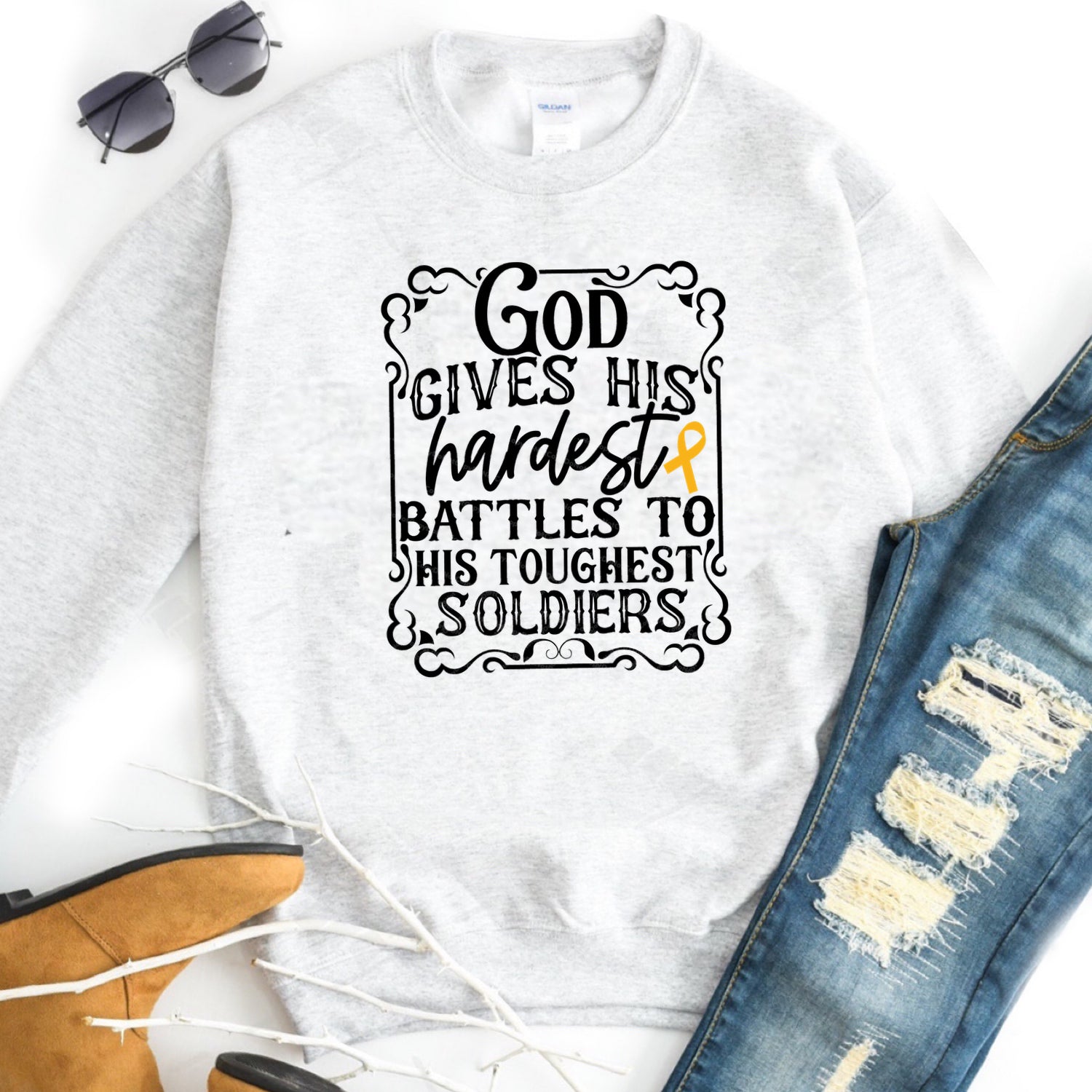 God Gives His Hardest Battles To His Toughest Soldiers w/ Ribbon