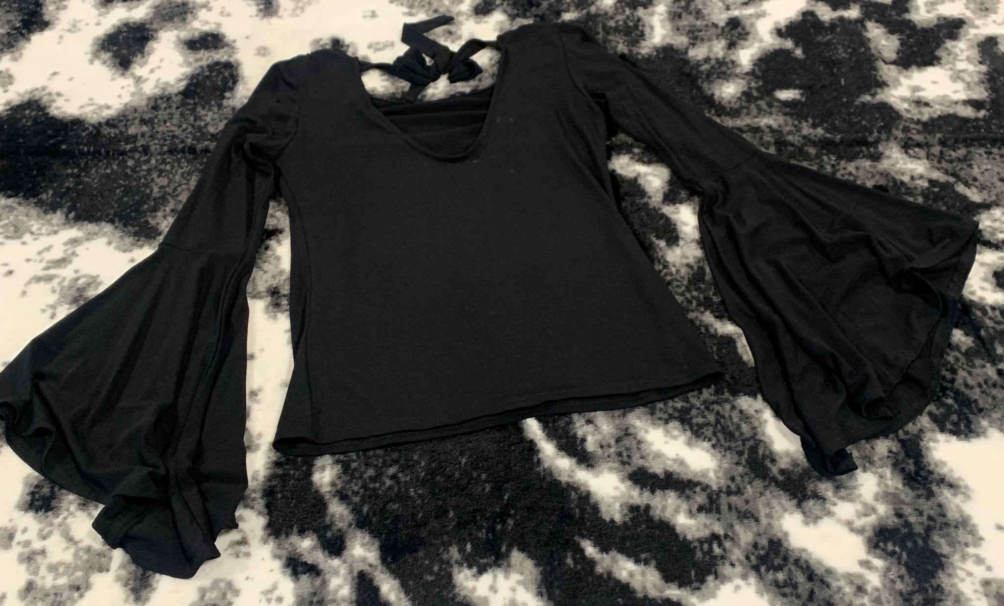 238 - Black Tie Back Blouse - Size S